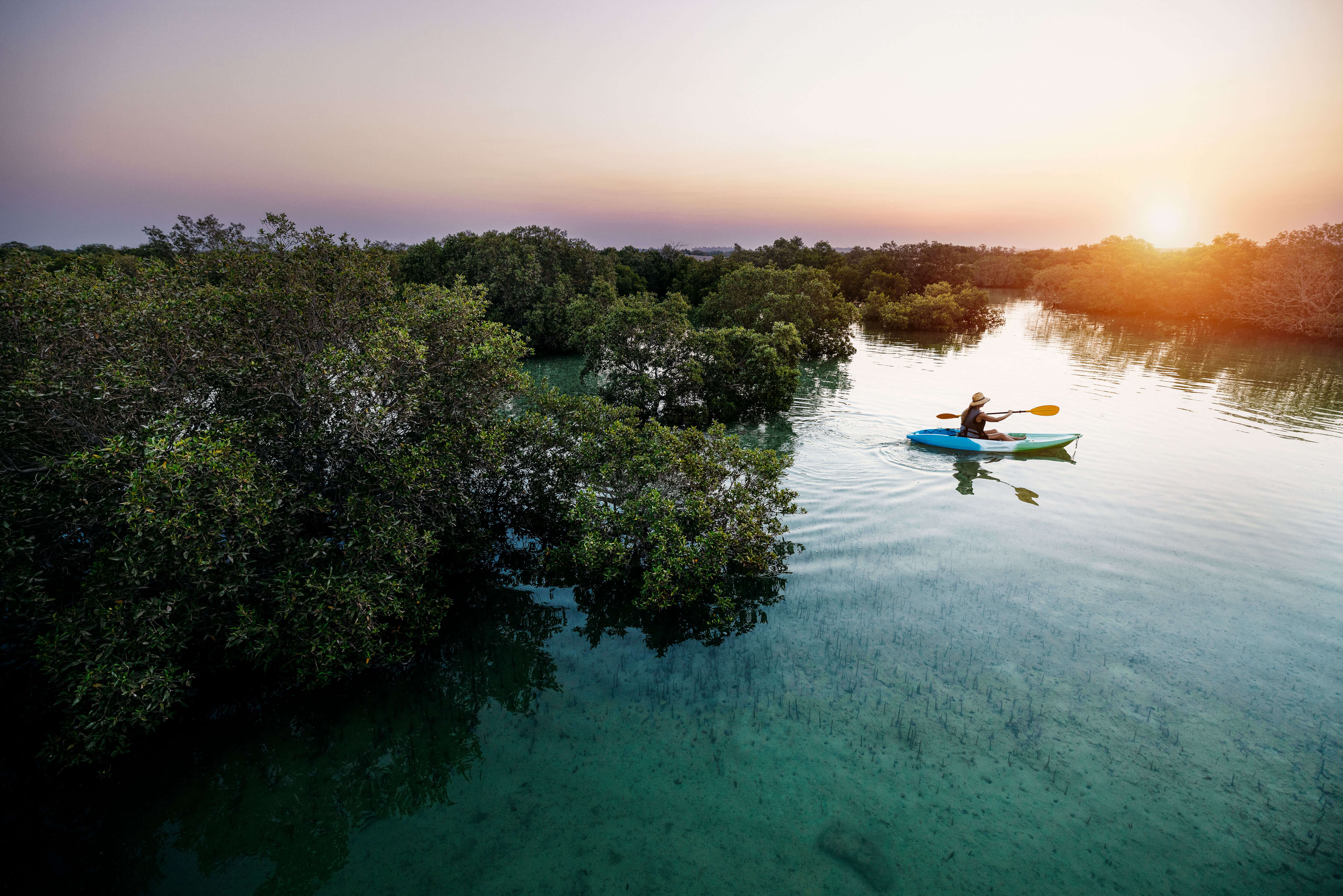 Your day in Abu Dhabi will unfold as a mesmerising blend of culture and nature. The grand mosque offers architectural wonders and a serene atmosphere for reflection. Remember to dress modestly, or alternatively, you can avail on-site attire rentals. At the Eastern Mangroves, embrace the serenity of the emerald-green waterways, and consider renting a kayak to navigate the gentle currents. From the intricate mosaics of the mosque to the chirping birds in the mangroves, this tour presents a harmonious convergence of man-made elegance and natural grace, all within easy reach of the airport.