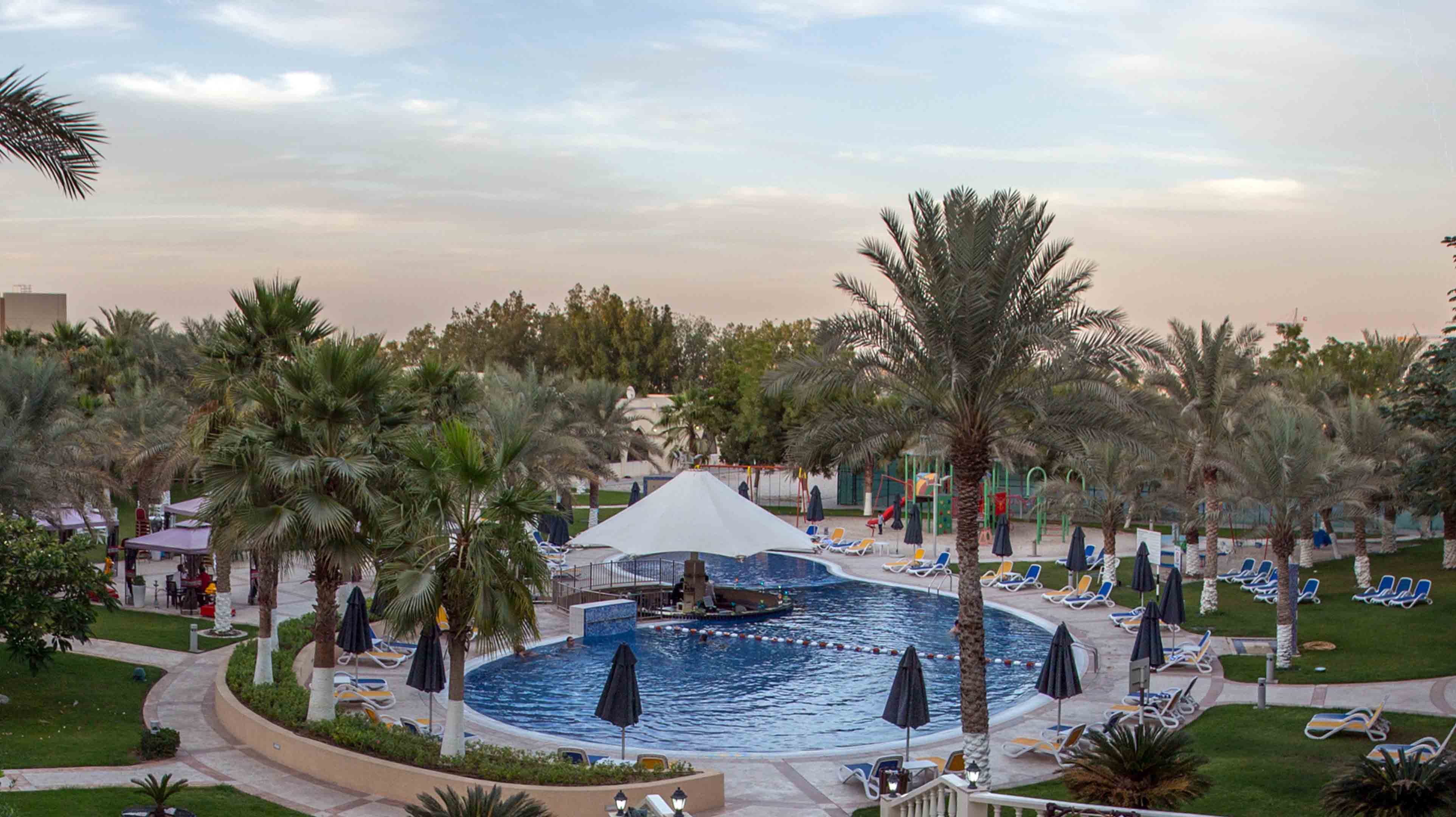 Oasis Pool Bar at Danat Al Ain Resort is the ideal spot for guests to unwind around the pool.