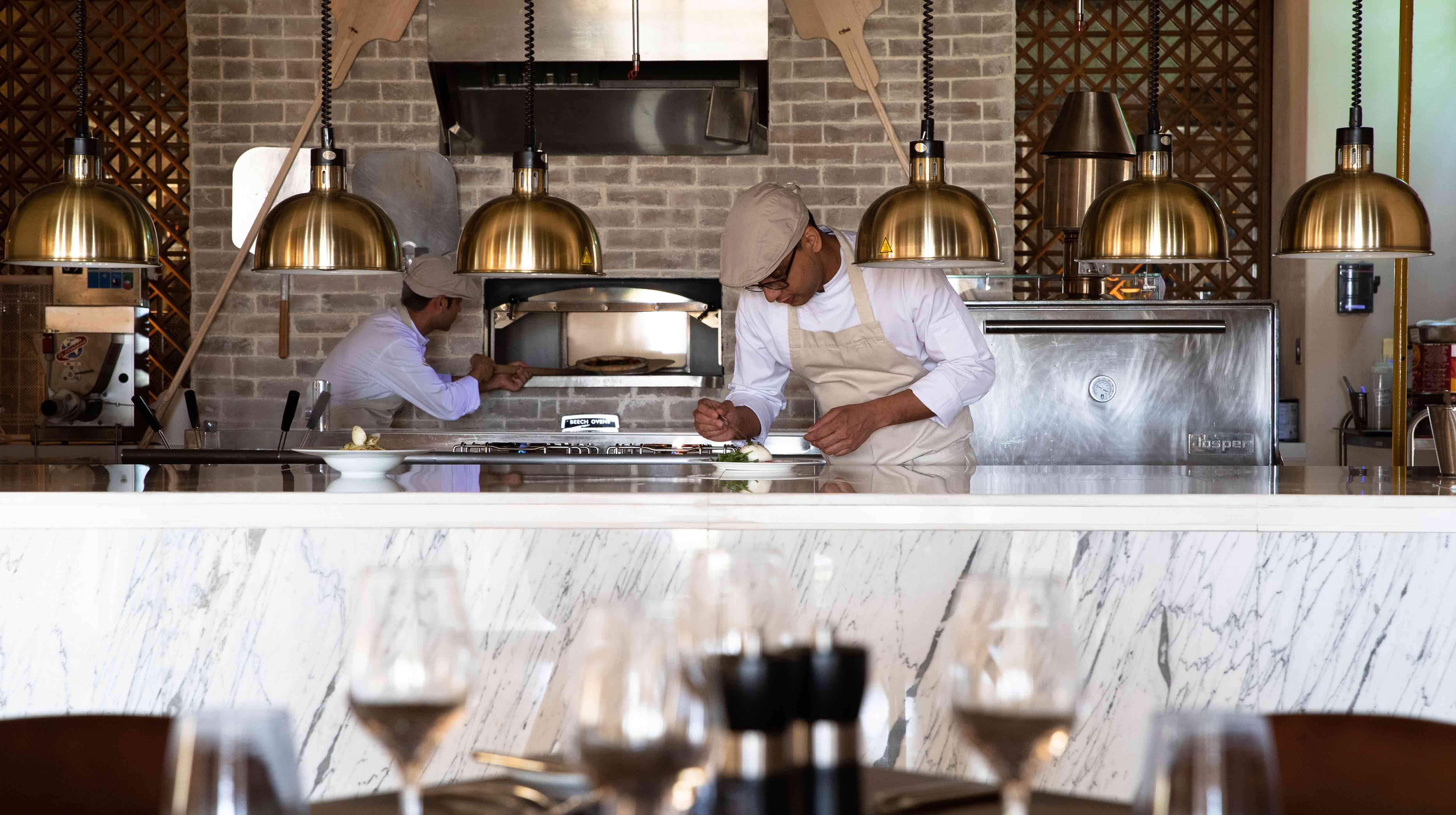 Mark the start to an evening with comfort Italian food and a well-selected glass of wine. Choose from private seats in booths or admire the talented chefs at work from the open layout of the kitchen.