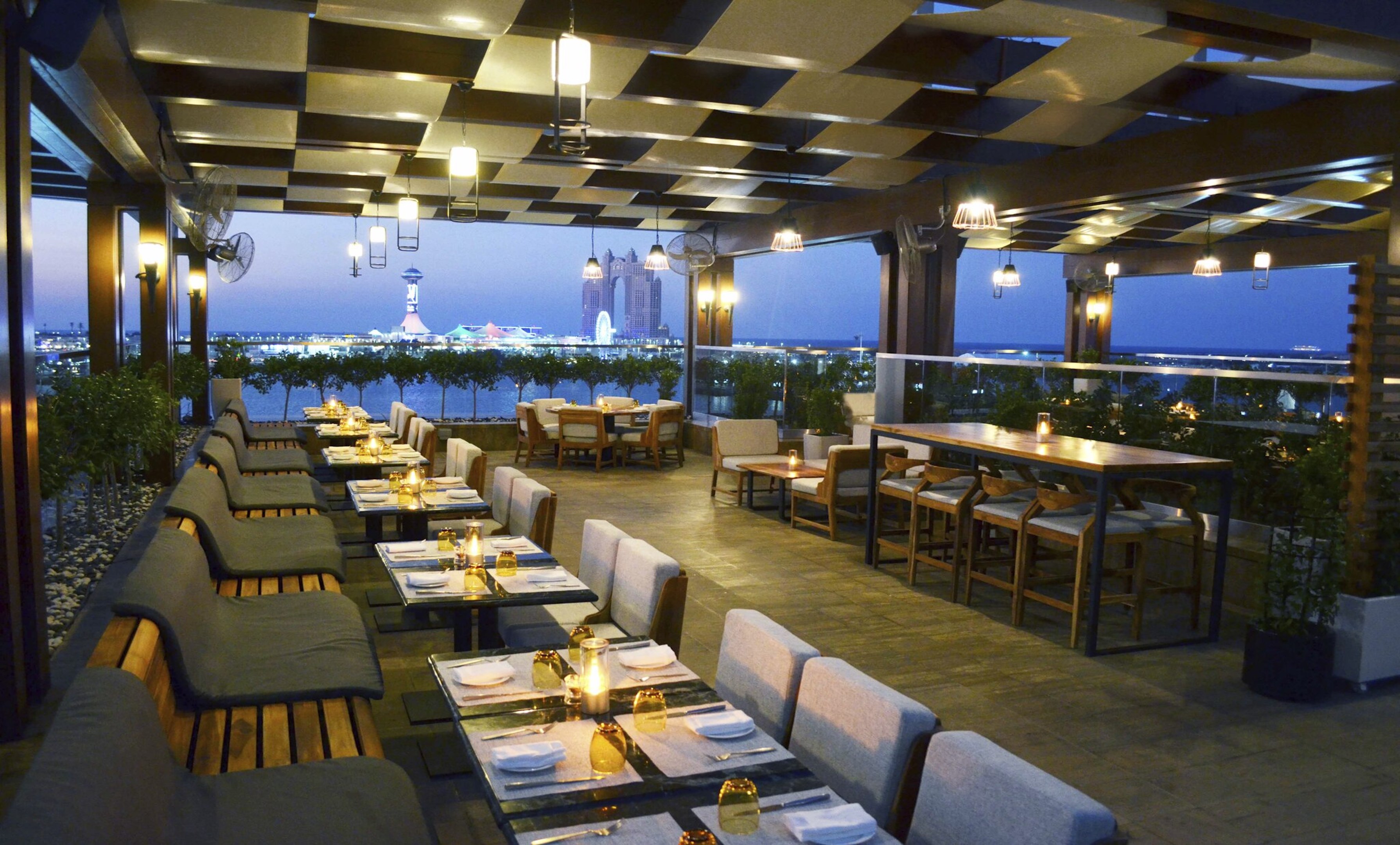 アズーラ・パノラミック・ラウンジは、この上ないお食事体験をお約束します。1,600 平方メートルのユニークな3階建ての屋外スペースに位置するラウンジからは、アブダビ・コルニッシュとアラビア湾の魅惑的な景色をご覧いただけます。きらめく光と暖かい海風が、友人や家族との思い出に残る食事に最適な雰囲気を演出します。