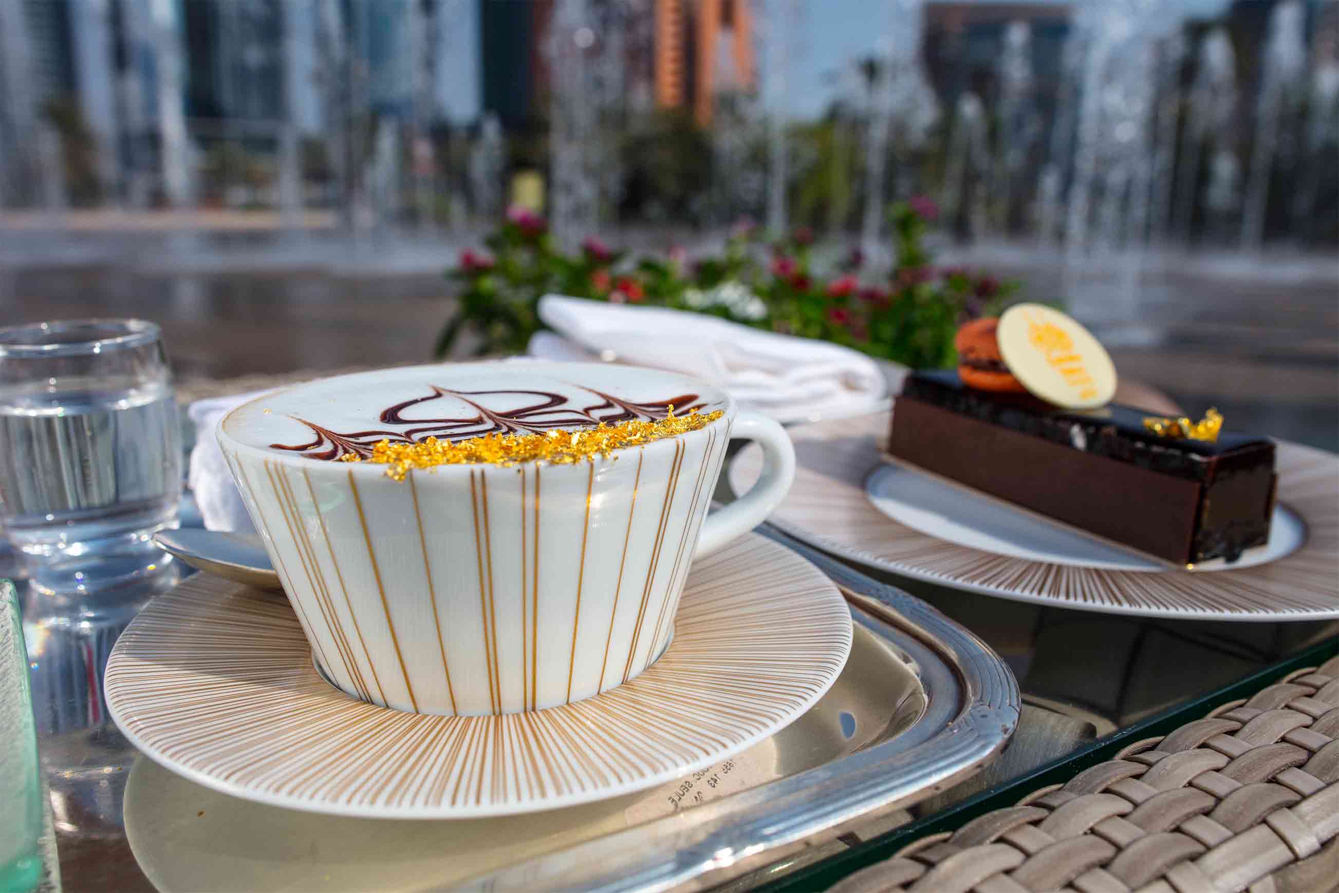 金箔をまぶしたチョコレートから、香り高い紅茶まで取り揃えるエミレーツパレス(Emirates Palace)のル・カフェ(Le Cafe)は、ティータイムや打ち合わせに利用したり、食前酒や軽食を楽しんだりするのにぴったりのスポット。
