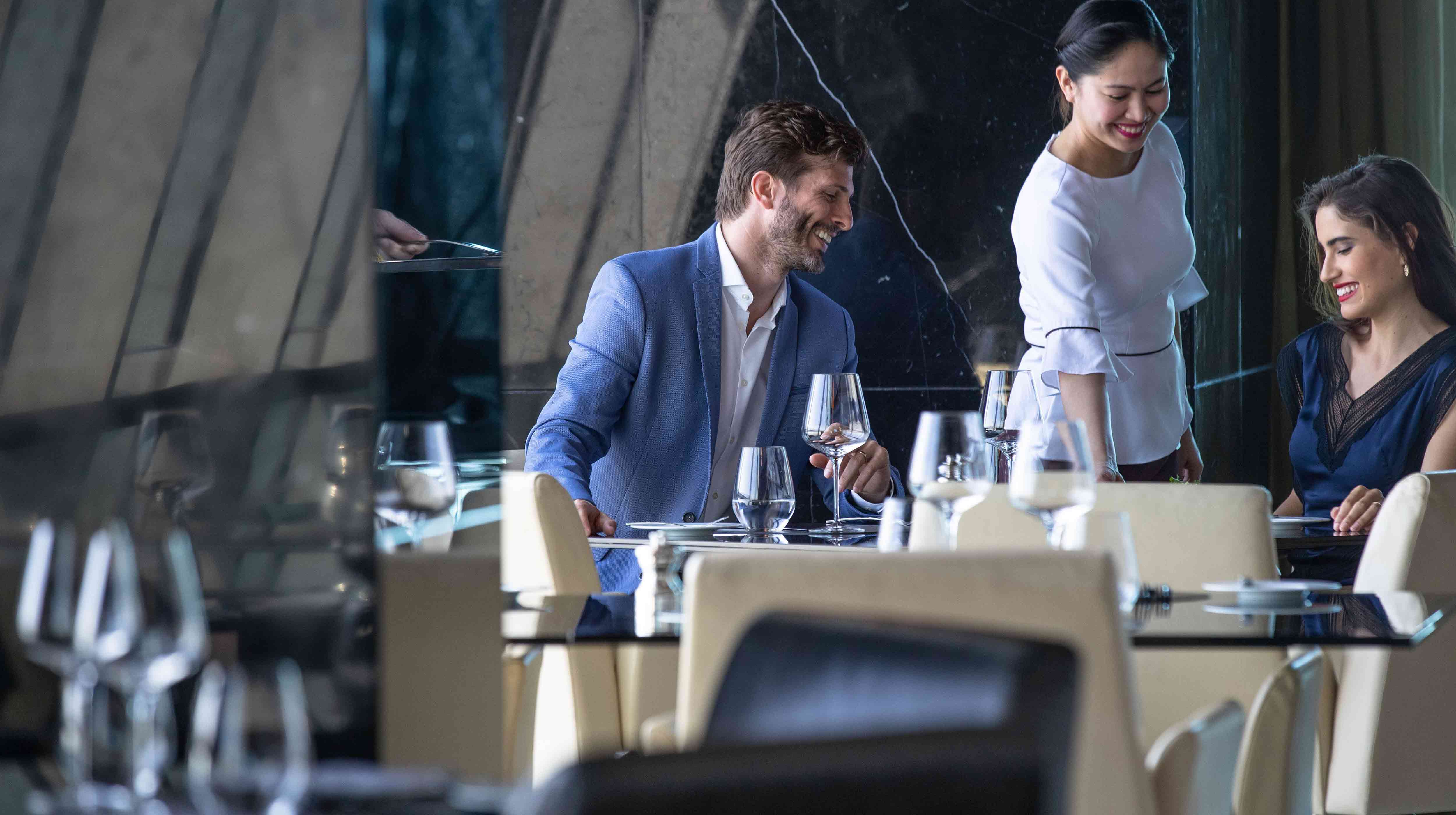 瑞斯烧烤餐厅位于卓美亚阿提哈德酒店63层,是品尝上等牛排的绝佳去处。餐厅甄选澳大利亚、爱尔兰和美国的最佳牛肉供应商,有品味的肉食爱好者可以在这里品尝来自全球著名牧场的各式牛排。 从美国农业部认证的优质牛肉,到澳大利亚大师级和牛,餐厅力求以高超的技艺烹饪高品质的新鲜食材,而这也正是这家当代牛排餐厅吸引回头客的关键原因。食客可在餐厅欣赏到阿布扎比及阿拉伯海湾的360度无敌美景,在宁静祥和的氛围中尽情放松,俯瞰下方城市的点点灯光。餐厅服务员无微不至的周到服务更会为您的用餐体验锦上添花。